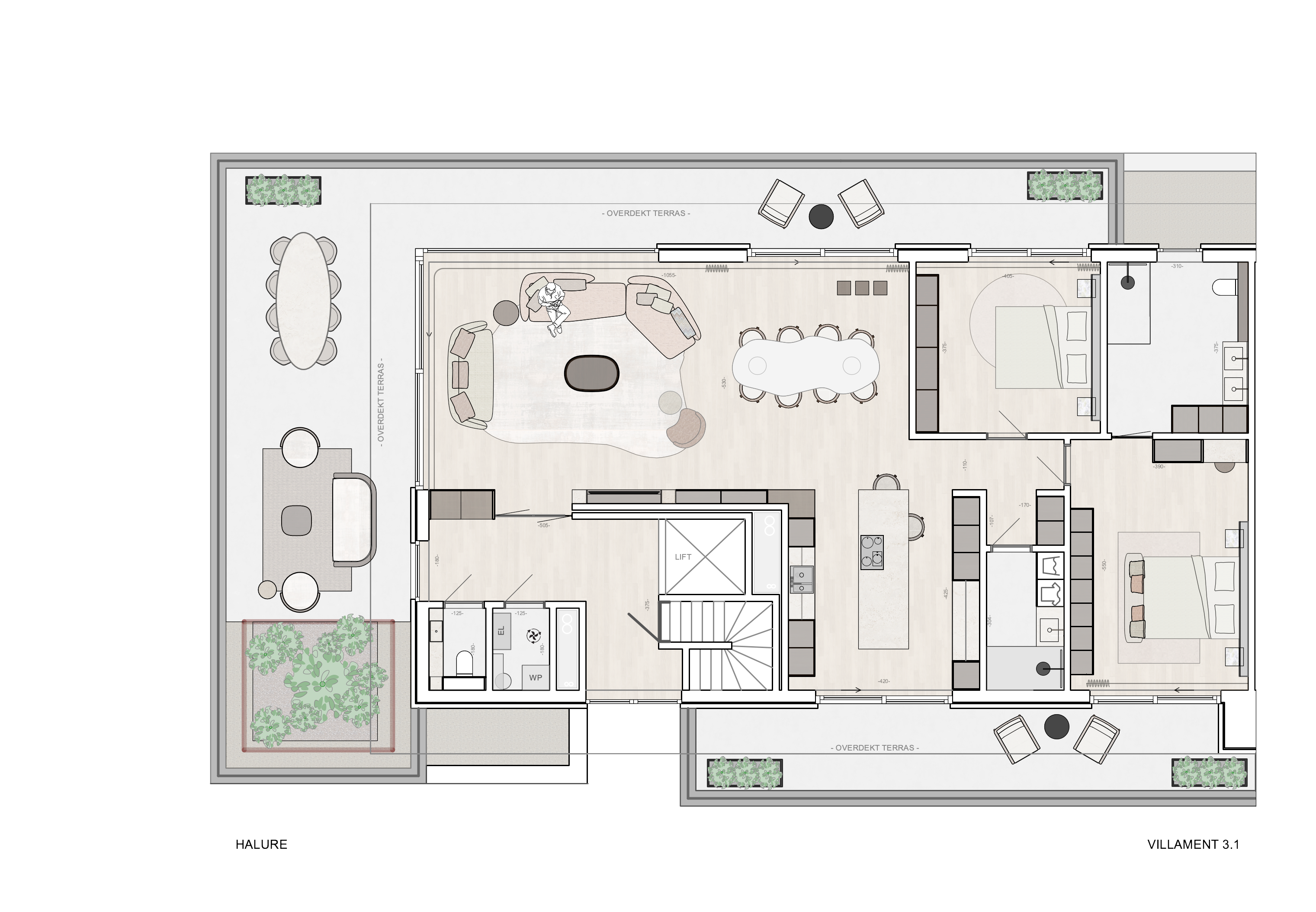 Een villament straalt niet alleen stijl en klasse uit, maar voelt ook meteen aan als thuis. Met oog voor detail, kwalitatieve materialen en tijdloze keuzes creëren we samen een warme, harmonieuze woning die helemaal aan uw wensen voldoet.